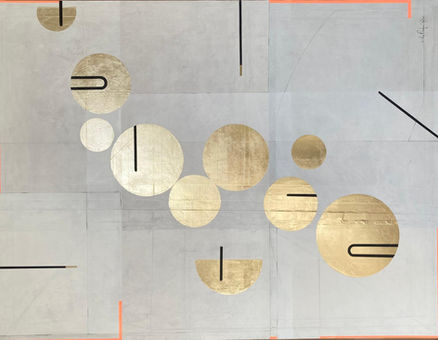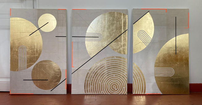 She has designed and created stained glass windows for the Saint-Martin d’Argentine chapel in Dordogne and for the Saint Maclou church in Conflans-Sainte-Honorine [2015]. Companies regularly commission her works. These bring to life the walls of a Parisian hotel, the Marseille law firm BBLM & Associés, the headquarters of La Poste and other public companies such as Toit et Joie in Paris. Individuals also commission her paintings, which often include personal messages. Elise Oudin Gilles commits herself body and soul to each challenge. She is an artist in motion, turned towards the aftermath. Her work feeds on the ephemeral, signs and contemporary realities. Her art can be light, existentialist. In her image.