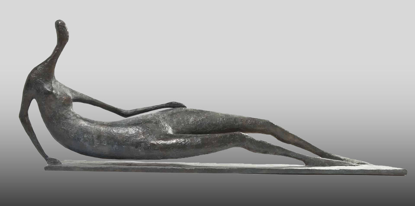 Elongated shapes, frail limbs contrast with more massive torsos, heads reduced to the essential, dominate long slender necks. Heavy and light, full and empty, convex and concave are playing a permanent game, creating a monumental and open space.